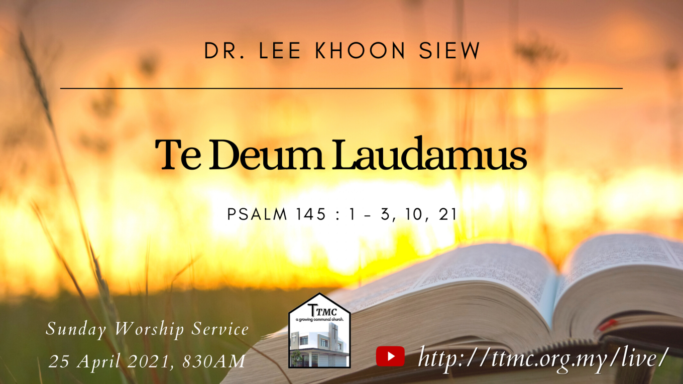 Read MoreDate: 25.04.2021 Time: 8:30AM Preacher: Dr. Lee Khoon Siew Scripture Verses: Psalm 145: 1-3, 10, 21 Sermon: Te Deum Laudamus