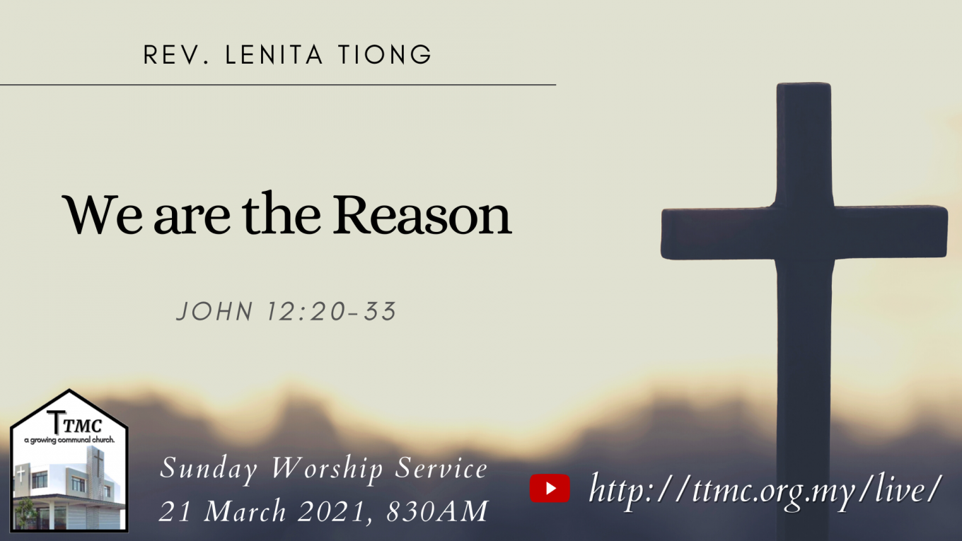 Read MoreDate: 21.03.2021 Time: 8:30AM Preacher: Rev. Lenita Tiong Scripture Verses: John 12:20-33 Sermon: We are the Reason Worship Songs: Once
