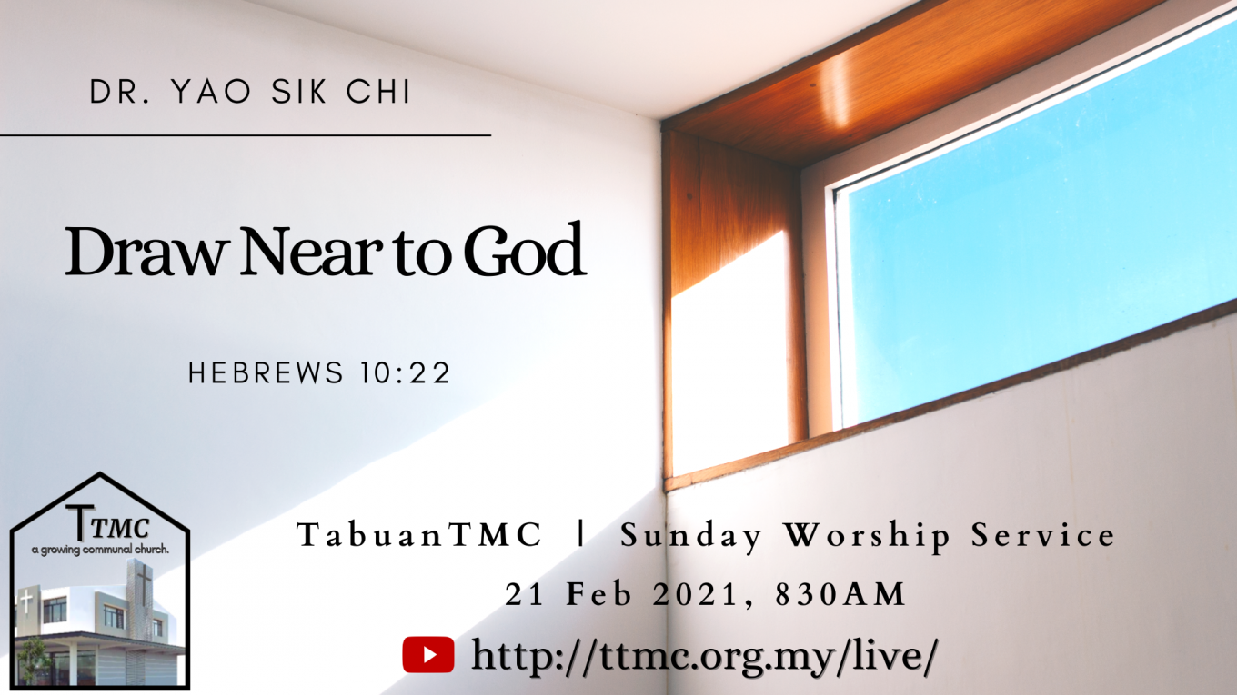 Read MoreDate: 21.02.2021 Time: 8:30AM Preacher: Dr. Yao Sik Chi Scripture Verses: Hebrews 10:22 Sermon: Draw Near to God Worship Songs: