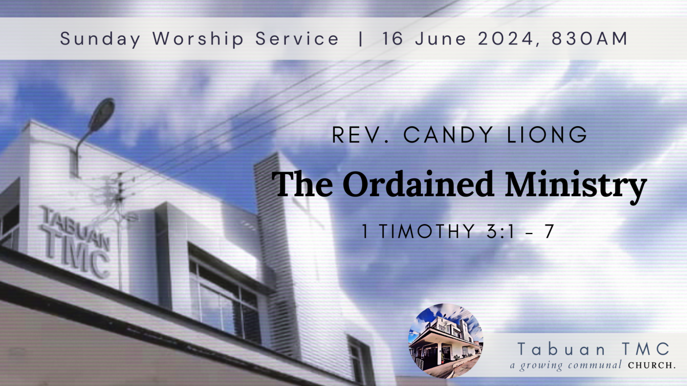 Read MoreDate: 16.06.2024 Time: 8:30AM Preacher: Rev. Candy Liong Scripture Verses: 1 Timothy 3:1 – 7 Sermon: Wanted: The Ordained Ministry