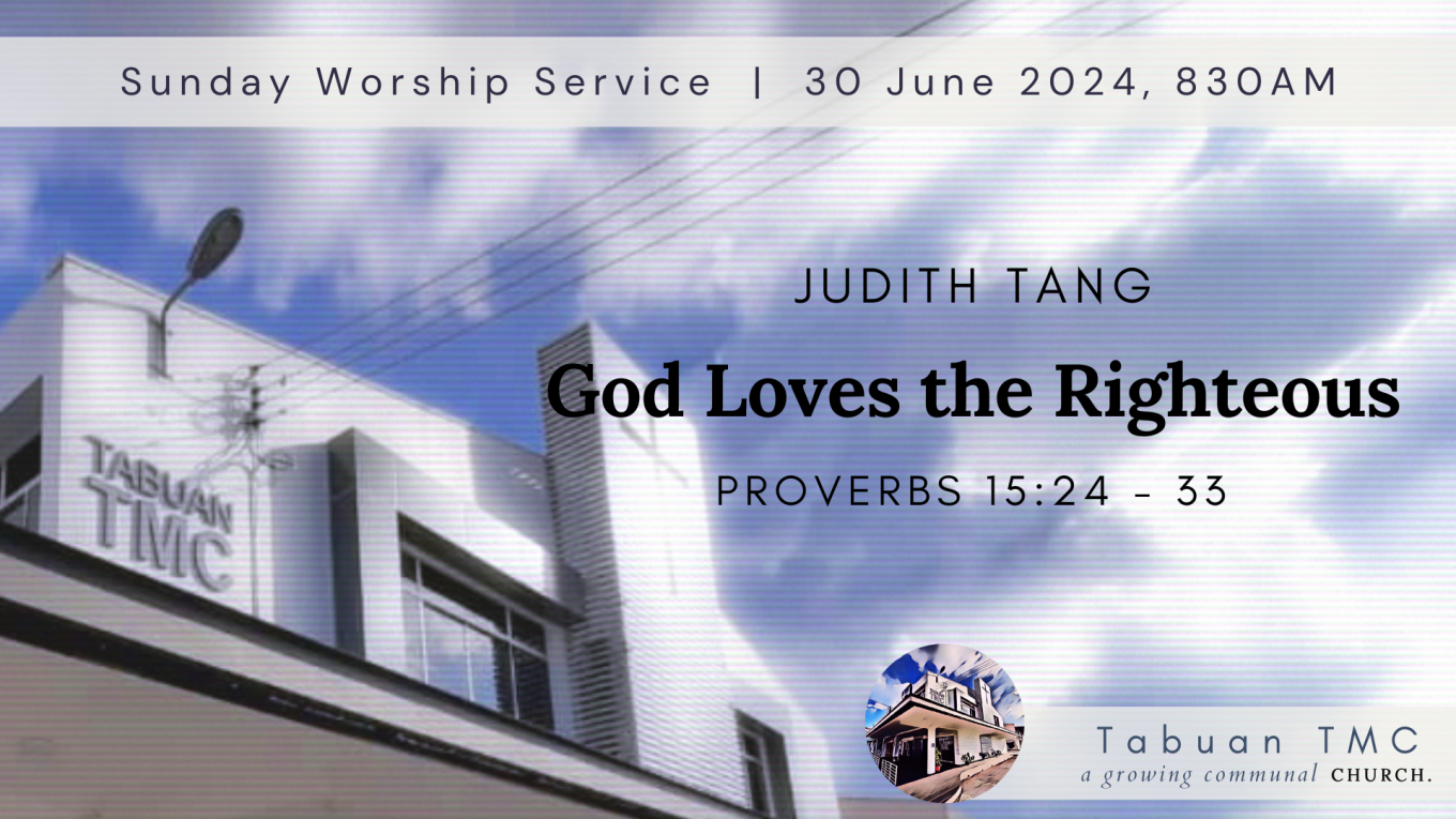 Read MoreDate: 30.06.2024 Time: 8:30AM Preacher: Judith Tang Scripture Verses: Proverbs 15:24 – 33 Sermon: Wanted: God Loves the Righteous