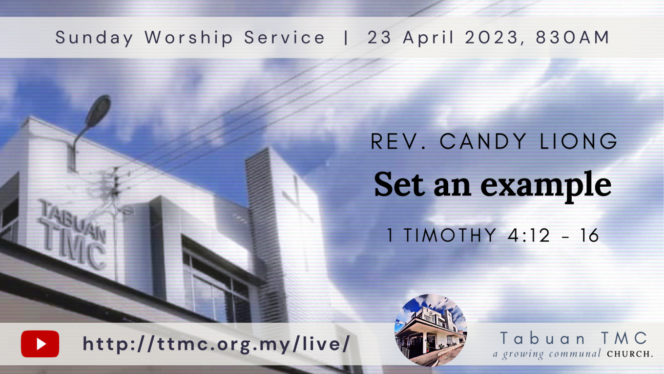Read MoreDate: 23.04.2023 Time: 8:30AM Preacher: Rev. Candy Liong Scripture Verses: 1 Timothy 4:12 – 16 Sermon: Set an example Worship