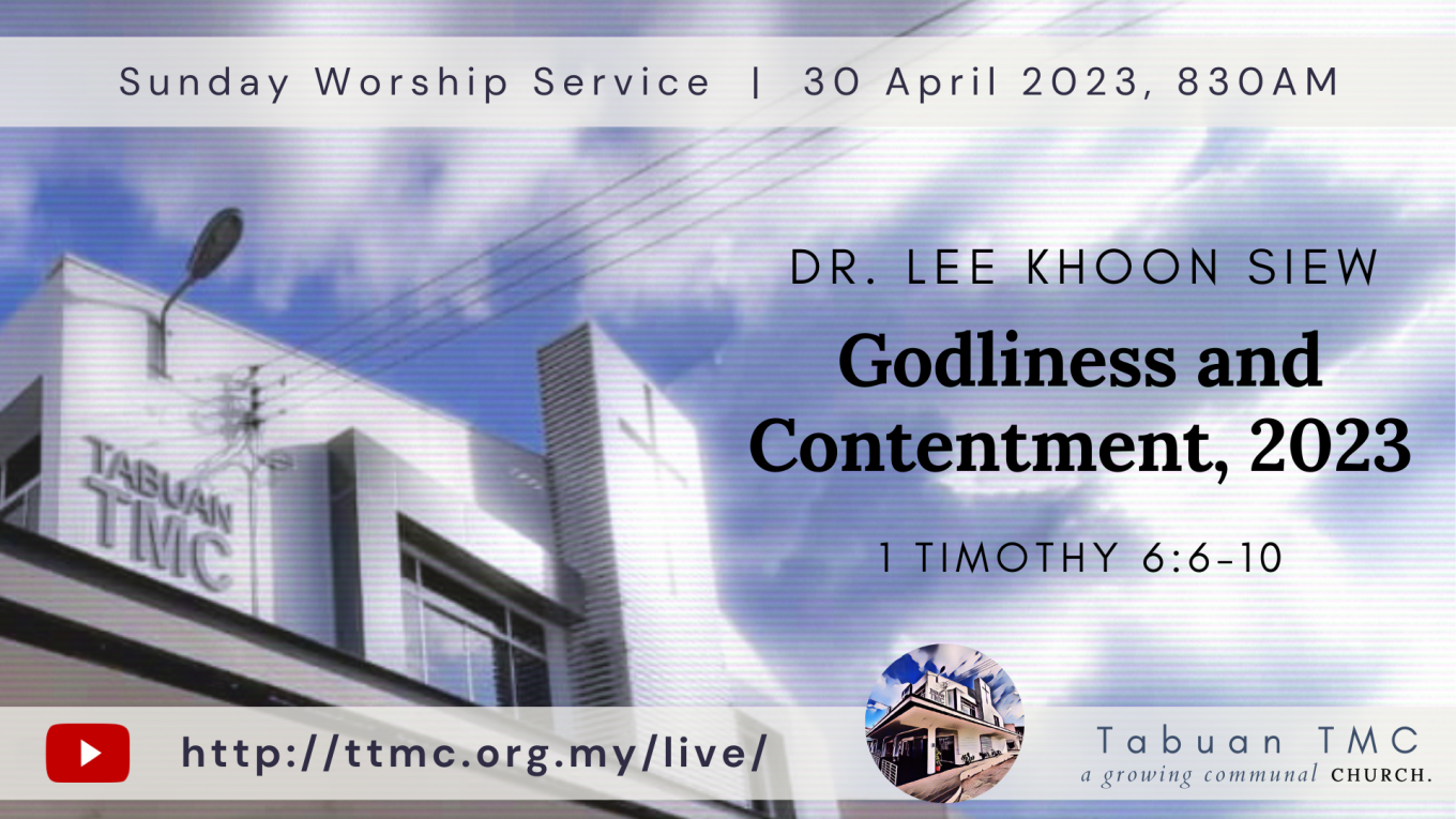 Read MoreDate: 30.04.2023 Time: 8:30AM Preacher: Dr. Lee Khoon Siew Scripture Verses: 1 Timothy 6:6 – 10 Sermon: Godliness and Contentment,