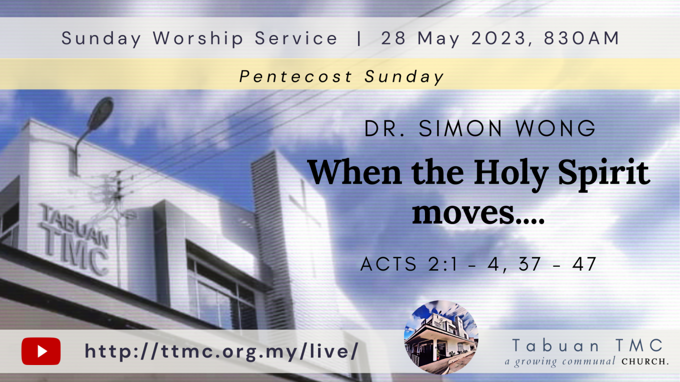 Date: 28.05.2023 Time: 8:30AM Preacher: Dr. Simon Wong Scripture Verses: Acts 2:1 – 4, 37 – 47 Sermon: When the