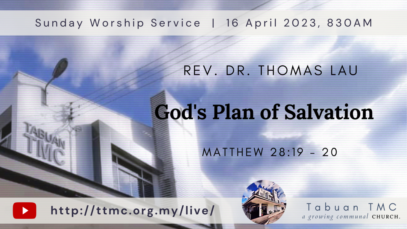 Date: 16.04.2023 Time: 8:30AM Preacher: Rev. Dr. Thomas Lau Scripture Verses: Matthew 28:19 – 20 Sermon: God’s Plan of Salvation