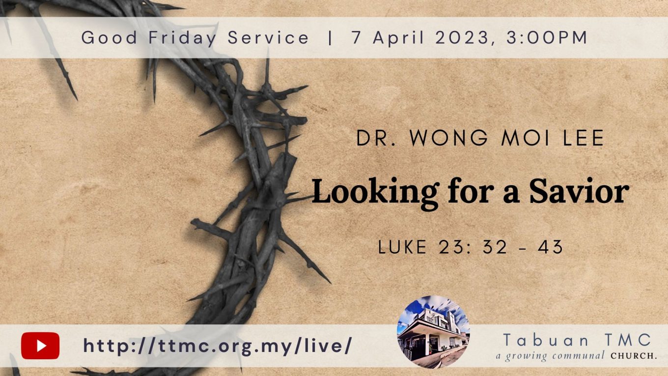 Read MoreDate: 07.04.2023 Time: 3:00 pm Preacher: Dr. Wong Moi Lee Scripture Verses: Luke 23: 32 – 43 Sermon: Looking for