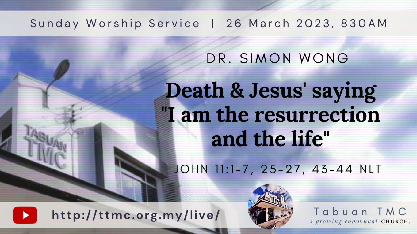 Read MoreDate: 26.03.2023 Time: 8:30AM Preacher: Dr. Simon Wong Scripture Verses: John 11:1-7, 25-27, 43-44 NLT Sermon: Death & Jesus’ saying