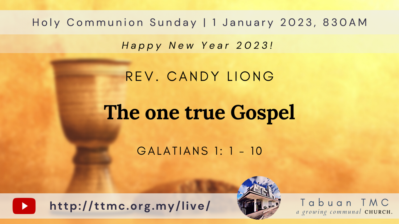 Read MoreDate: 01.01.2023 Time: 8:30AM Preacher: Rev. Candy Liong Scripture Verses: The one true Gospel Sermon: Galatians 1: 1 – 10