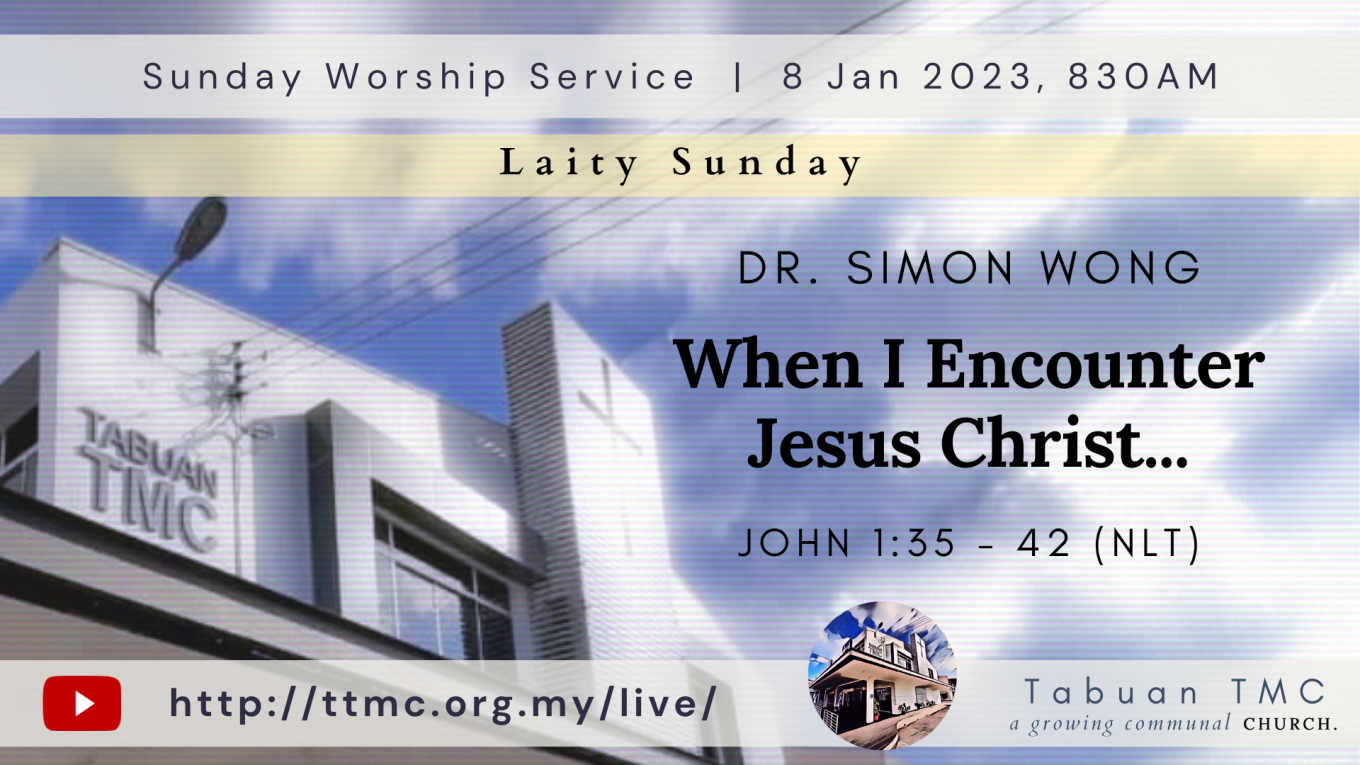 Read MoreDate: 08.01.2023 (Laity Sunday) Time: 8:30AM Preacher: Dr. Simon Wong Scripture Verses: When I Encounter Jesus Christ… Sermon: John 1:35