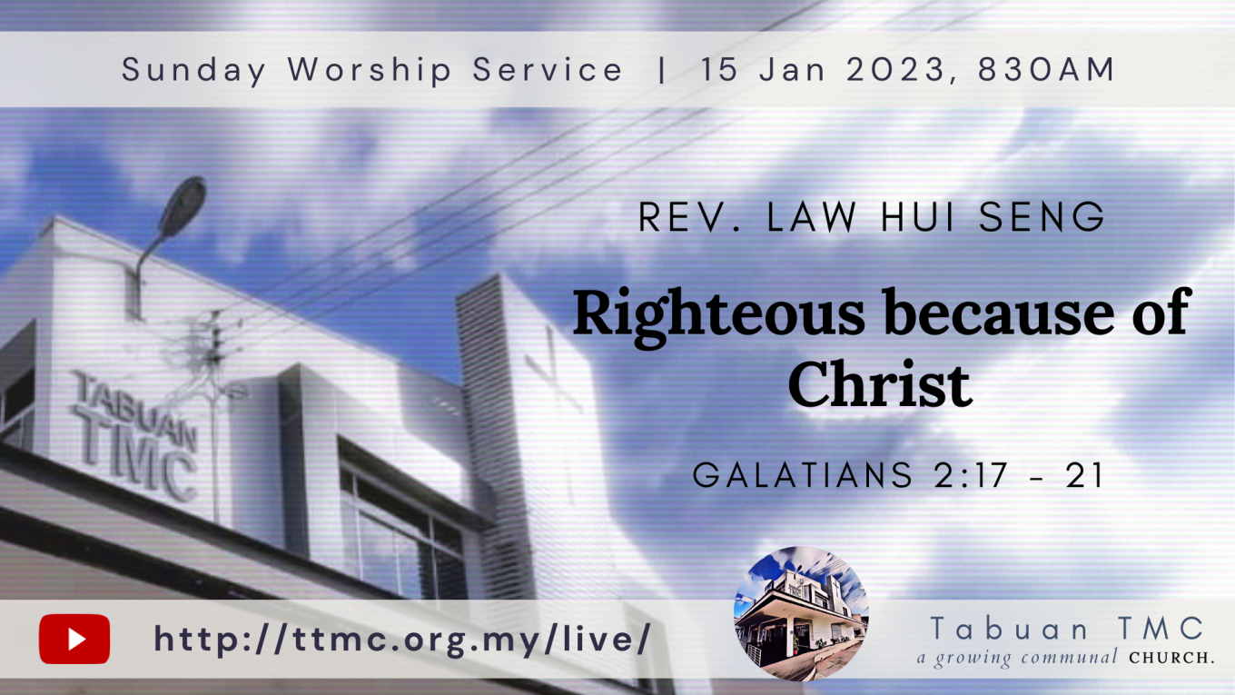 Read MoreDate: 15.01.2023 Time: 8:30AM Preacher: Rev. Law Hui Seng Scripture Verses: Righteous because of Christ Sermon: Galatians 2:17 – 21