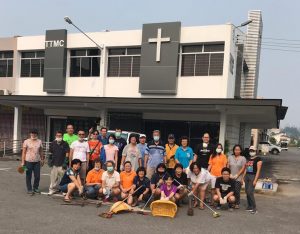 Many thanks to all these who came at 7:30am  on a public holiday, sacrificing their beauty sleep to clear, clean, weed, dig & plant many flowers & shrubs for the House of God!