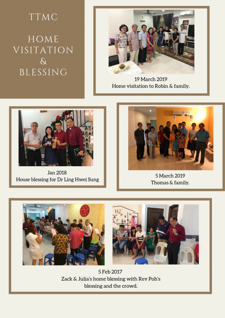 We have a team of volunteers, usually with the pastor who visit worshipper/member’s homes upon them agreeing, with the purpose to get to know one another better and to pray for the family. Those who require home blessing or in need of prayers can contact the church’s office number at 082-505400 or Dr. Lee Khoon Siew.