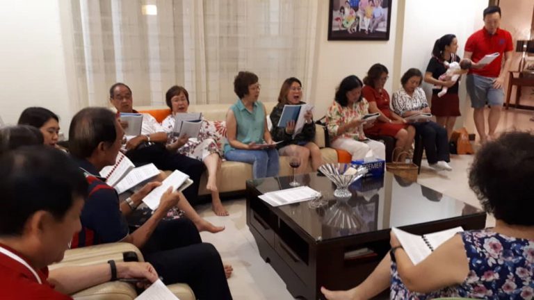 A typical program of small group meeting consists of: praise and worship, bible study, open discussion facilitated by the leader, sharing and praying for one another, ending with some simple refreshments over fellowship. The venues of meeting can be in the homes or at Tabuan Laru church.